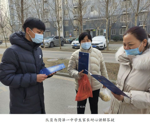 遵守学校防疫要求,宣讲采取线上方式进行。在为母校的学子们进行宣讲时,宣讲队队员许明勋分析:“坚持努力学习,坚持平心静气,不跟随别人学习的脚步,不因为成绩起伏跌宕而自甘堕落,是高考不会失利的关键。”紧接着,他就对高三学子们的鼓励与祝福介绍了中国石油大学(华东)的校史及优势学科,并从校园环境、升学就业、教育制度等方面,通过具体的数字与实例进行宣讲。付出终有回报,线上的宣讲取得了高三学生们的一致好评。由于无法步入校园与高三学生交流,实践队员们在学生放假时早早的去到校园门口,为在校门口等待的家长们发放宣传册。家长们也热情的与实践队员们交流,包括对大学的看法以及孩子的一些基本情况。在与家长们交流的过程中,实践队员们也了解到,孩子以后的发展以及选择的人生与家长的教导、家长的想法和家庭氛围密不可分。实践队员赵博在发放宣传册的过程中,向家长们介绍了中国石油大学(华东)的优势与特点,让他们对于石油大学有了更深的了解,充分完成了对学校的宣传任务。