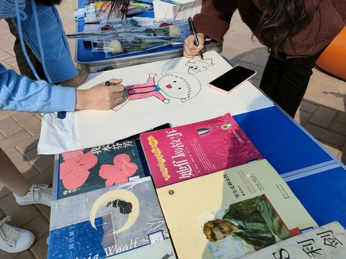 活动伊始,领读人胡杨果致开场词,欢迎同学们的到来并介绍活动内容,以便同学们了解活动项目并选择参加自己感兴趣的活动。读书分享会开始前,主持人和权益维护部成员为大家介绍有关书籍,分享有关女性的文章与故事。分享结束后同学们写下活动感悟、读书好句分享与自我期待等内容并张贴在分享墙上,相互交流并拍照打卡。紧接着,大家根据喜好自由参加以下三个特别项目:“唤醒乐园”——展览属于你的浪漫,活动现场举办小型海报展览,本次展览由现场同学们共同参与创作。活动现场提供海报纸与涂鸦笔,同学们以girls help girls、向美而生、性别平等、女性独立等为中心主题进行海报创作,也可以画一支玫瑰、写下一个愿望或者进行涂鸦,完成创作后在现场张贴展示、丰富本次展览内容,并拍照打卡、在朋友圈进行分享。“大声说爱”——阅读分享活动,此活动参与者选取了与女性相关的书籍中积极向上的片段进行摘取朗诵,有相似观点的同学进行深入交流,达到以书会友的目的。最后,开展交换心情盲盒之“快乐循环”活动,同学们在便利贴上写下自己的焦虑和烦恼,然后将便利贴放入盲盒中,再从旁边的安慰盲盒中随机抽取一张便签,写下鼓励便签投入到安慰盲盒中进行循环。宣泄出自己的焦虑,为他人带去了鼓励与帮助。