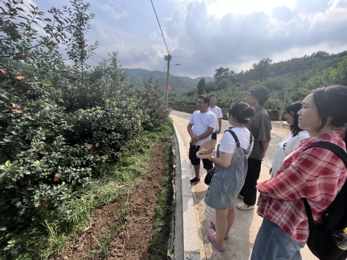 在交流过后,负责人带领实践团队参观了苹果种植园区,近距离观看果树的生长。“希望你们都能做好当下的每一件事,就像对苹果的管理,每一环节都需要认真把控,负责才能成功。”王鹏绩对大学生寄予厚望。在这一片欣欣向荣的果园里,苹果的生长承载着全体肖家夼村民的希望。而实践队员在肖家夼村看到创新、知识和技术对于乡村的影响。一个贫困村能成为经销商争相前往的先进基地,这足以证明知识和创新对于乡村的发展具有重要作用,所以只有将知识带给农民、带到乡村,才能实现乡村更好的变革和发展。