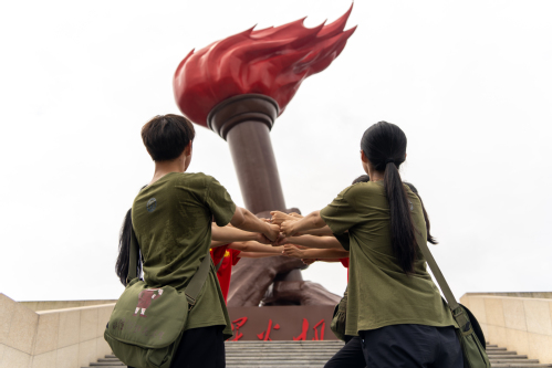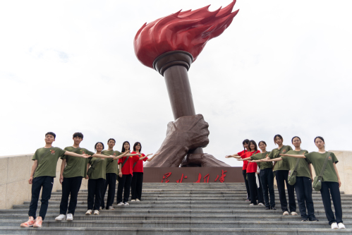 “世上无难事,只要肯登攀”,实践队成员前往南山公园,跨越层层阶梯,途经五大哨口,到达了顶端的火炬广场。火炬广场从入口到火炬主题雕塑,沿途共有90个主题火炬。主火炬底座高2.7米,标志着井冈山革命根据地在1927年创立,点燃了“农村包围城市”的星星之火,孕育了伟大的井冈山精神,领导着革命力量走向了更加广阔的天地。站在火炬广场,可以远眺雄伟的井冈山主峰,俯瞰茨坪全貌,矗立在薪火相传的火炬下,红色的地毯配以巨型的红火炬,让人油然而生肃穆和敬畏之感。