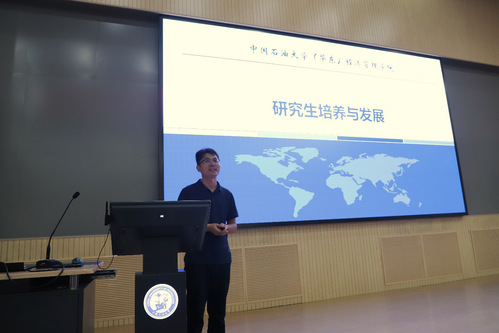 首先,孟兆刚带领研究生们共同回忆了学院的发展历程,结合新时代青年的使命要求,指出研究生要在思想内质、外在特征、处世准则、意志品性、行为操守等多方面不断锤炼提升,争当有理想、敢担当、能吃苦、肯奉献的新时代青年。另外,孟兆刚为研究生们介绍了石大精神以及6165cc金沙总站检测中心的人才培养模式,通过讲解知名校友的光辉事迹使得研究生们深刻感悟学院在家国情怀、全球视野、创新精神、专业素养等方面的育人理念。同时,他为研究生们在角色转换、认知习惯、性格塑造、素质提升、底线原则及核心竞争力提升等方面提出了建议。