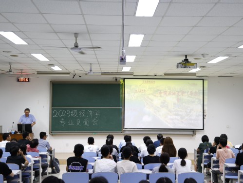 在经济学专业见面会上,王军鞭策同学们踔厉奋发,明确并树立高远目标。经济系系主任李永波给同学们介绍了学科历史、师资力量、人才培养计划等内容,使同学们对经济学有了更清晰的认识,帮助同学们更好的成长成才。