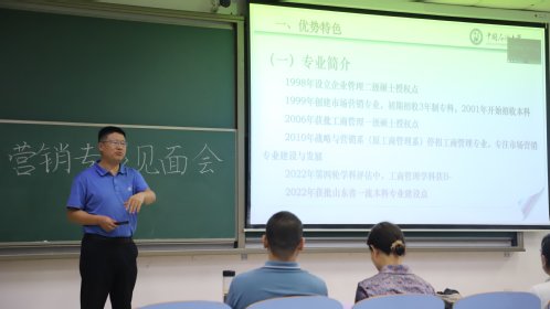 市场营销专业见面会上,主讲人就学科优势特色介绍专业概况、定位、特色与师资力量,让营销系新生对自己的专业有了更深的了解。接下来,主讲人剖析专业的建设成效与培养目标,并以典型毕业生代表江丹为例指出该专业未来发展方向,提出“营者精知,销者重行,知行合一”的人才发展理念,激励学生提前树立目标,做好未来规划。