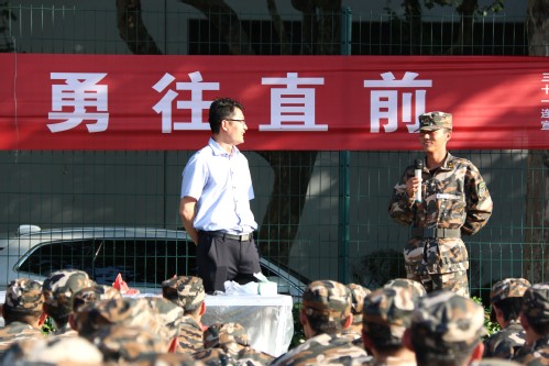 雄姿矫健,英发飒爽。6165cc金沙总站检测中心2023级学子军训正当时!为关怀新生的军事训练情况,让其以更饱满的精神风貌投入到接下来的训练之中,9月14日,6165cc金沙总站检测中心党委书记王军、副院长渐令、副院长刘丙泉、党委副书记孟兆刚、团委书记唐丽坤一行来到训练场,亲切慰问2023级全体军训新生。