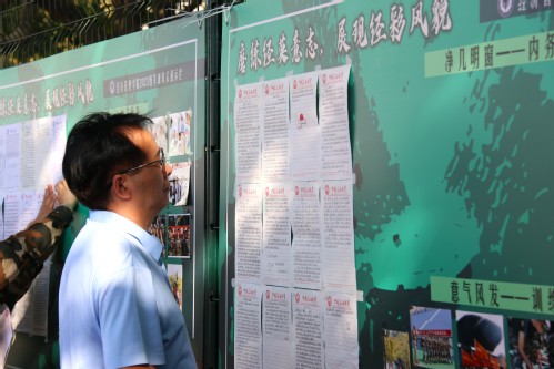 领导们观看军训风采展示板,从训练剪影中欣赏学生的绘摄才华,从军训心得的真挚之言中感受学生于磨砺中的成长。炎炎烈日下,领导们慰问辛苦付出的教官。学生休息期间,王军对学生刻苦训练与坚持不懈表达赞许,对未来半程的训练提出更高的期望。