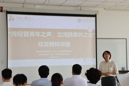 “传经管青年之声,立鸿鹄青衿之志”校友榜样系列讲座在热烈的互动中圆满结束,程琨、郭通、张佩、杨子圣、刘佳峰校友希望经管学子能够继续传承“家国同心、艰苦奋斗、惟真惟实、追求卓越”的石大精神,刻苦学习,努力钻研,树立远大理想和目标,成长为具有“全球视野、家国情怀、创新精神、专业素养”的新时代高素质经管学子。