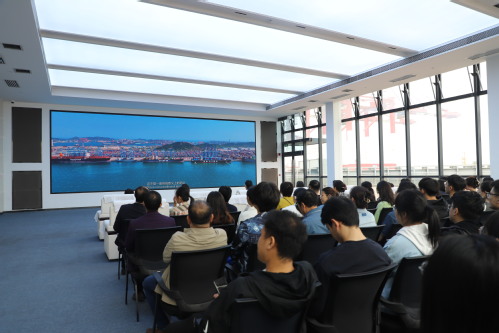 最后,参观人员观看了山东港口自动化码头宣传片,并实地进入观景平台观摩自动化码头作业现场,近距离感受全国唯一一个智慧、绿色“双五星”港口。