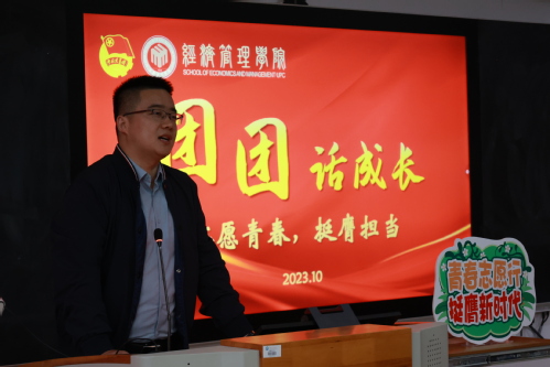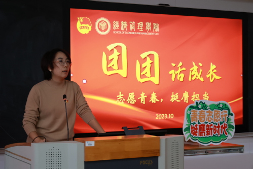 【我院:张雅慧】为畅通团员青年与团干部之间的交流沟通机制,进一步发挥志愿服务与社会实践的育人功效,10月31日下午于南教101MBA教室,6165cc金沙总站检测中心团委举办第三期“团团话成长”活动。本期活动主题为“志愿服务,挺膺担当”, “育菁小萌仙——AIGC 赋能社区情境国学教育服务”项目指导老师宋伟、项目负责人王一婷,“外语小队—乡村儿童英语口语水平提升助力者”项目负责人张坤宇主讲,校团委副书记姜士绅受邀出席活动,我院团委书记唐丽坤主持活动,我院2023级学生代表参与。