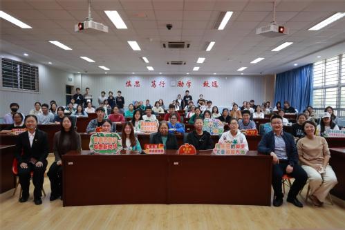 社会实践与志愿服务是大学生接触社会、了解国情、增长才干、磨炼意志的有效方式,唐丽坤首先介绍了学校、学院社会实践与志愿服务工作体系以及学院品牌实践队,鼓励学生投身社会实践与志愿服务。
