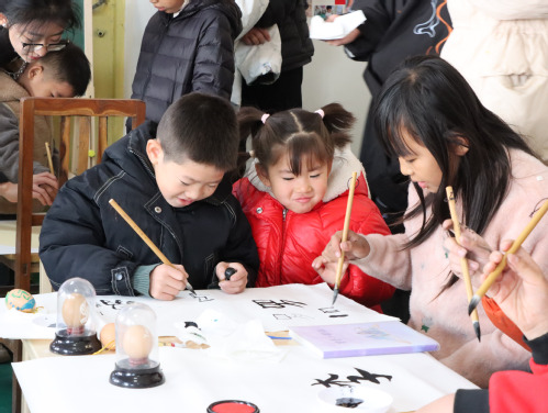 孩子们体验书法 王若橦摄