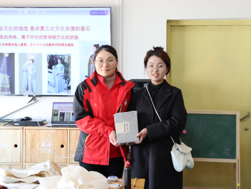 活动结束前,孩子们穿着心爱的汉服,拿着自己的蛋雕和书画作品合影留念。为表示对良同村国学教育的支持,育菁实践队为童伴之家的图书角捐赠了五套《经典沐心》国学经典系列丛书,由童伴之家负责人和育菁实践队领队姜瑞霞完成交接仪式。