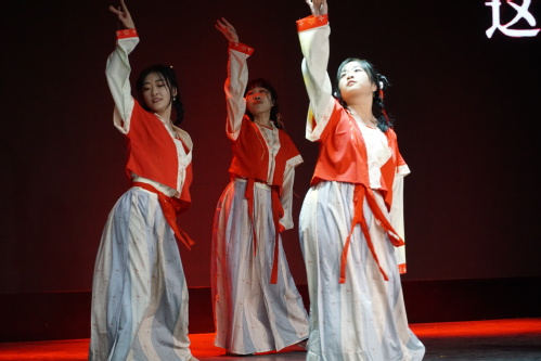精彩纷呈,晚会再继续。歌舞欢唱,一首《飞云之下》将聚光灯再次集中到舞台之上,歌声婉转;啦啦操舞蹈《New dance》、古典舞《三拜红尘凉》轮番登场,让观众们感受了不同舞种的独特魅力。小品《甄嬛后传》用惟妙惟肖的的表演、别出心裁的服饰和令人捧腹的情节翻转引得观众爆笑连连。白驹过隙,窗间过马,最后晚会在《如果我们不曾相遇》的歌声中走向尾声,如果我们不曾相遇,如何开启我们之间独特的故事;如果我们不曾相遇,又如何相聚在这灯光之下?感谢相遇,让你我携手共赴美好明天。
