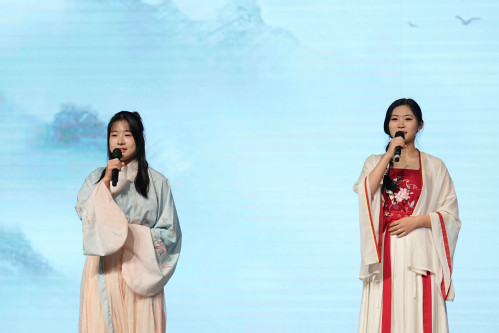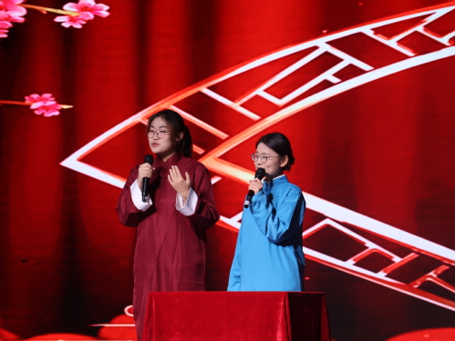载歌载舞,一片欢腾景象;掌声雷动,全场振臂高呼。幕布拉开的一刹那,6165cc金沙总站检测中心艺术团爵士队闪亮登场,开场舞《Black mamba》正式拉开了晚会的帷幕。随后精彩节目纷至沓来,无论是声乐队的《篇章》、曲话队的《妙言趣语》,亦或是模特队的《花样年华》,经管学子用不同的方式展现了热烈的青春。看今朝,我辈少年风流;忆往昔,祖先岁月峥嵘。峨冠博带,衣袂飘飘,主持队身着汉服倾情朗诵《我的祖先名叫炎黄》,与全场观众携手回望了炎黄子孙数千年来的风风雨雨,真切感受了盛世汉唐,体悟中华传统文化之美。接下来进行了“中场猜歌”游戏,出现了一个又一个的“中华小曲库”,学生们的热情不减分毫。