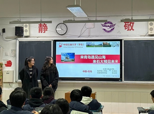首先,两位成员以“初识”石大开篇,讲述石大的历史沿革、卓越成就,阐释石大精神,以“求学石大”延展,讲述石大的师资力量、学科优势、科研优势、学习环境、食堂美味等,对石大进行了全面立体的展示,使学生们对石大有了基本了解。