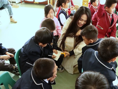 “学习雷锋好榜样,忠于革命忠于党”,在幼儿园小朋友们的齐声歌唱中,本次宣讲活动正式开始,郑新润向小朋友们讲授了“什么是水文化”——“小水滴旅行”的故事生动形象地展示了水的物态变化,不同时期“水”的写法直观体现了文字的演变。以“水”起兴,水无处不在:池塘里有水、小溪里有水、人的身体里也有水,郑新润告诉孩子们“志愿者们就像水一样,在生活中是随处可见的”,他们默默无闻、不求回报,用自己的光去照亮他人,用自己的火去温暖他人,他们平凡却又伟大,始终为社会和谐稳定而努力着,听到这里,小朋友们全都自发拍起了双手,教室里响起了热烈的掌声。接着郑新润问孩子们“什么是志愿者”,“日常生活中我们应该怎样帮助别人?”小朋友们热情互动、积极配合,说出了自己的想法,其中一位小朋友说:“看到地上有垃圾,我要把它捡起来,让环卫工人们更轻松。”孩子们的回答体现了他们的奉献精神,为了让孩子们对志愿服务有更深刻的了解,郑新润向大家讲述了雷锋的故事,并借此鼓励小朋友们向雷锋学习,人人争做小雷锋。