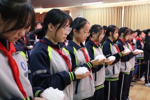 活动通过一段精彩的视频拉开帷幕,志愿服务中心蒋顺媛向同学们讲述了清明节的由来以及其背后蕴藏的文化知识,讲述期间以提问的形式使同学们更深地感受到了清明节的文化底蕴。宣讲结束后,由华顶山路社区相关负责人开启了清明小白花手工制作的环节,同学们跟着社区工作人员的指导亲手制作出了用来缅怀先辈的小白花。紧接着,便开始了清明文化祭祀宣讲,学生们在蒋顺媛的带领下,手捧做好的小白花,以网上祭祀的方式,为逝去的先辈们默哀,肃静而庄重,这神圣的一幕也为本次活动画上了圆满的句号。