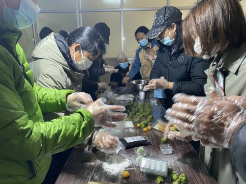 青团的圆形象征着团圆和满足,而绿色的外皮则代表着生命的勃发和希望的萌生。将艾草汁拌进糯米粉里令它外披春绿,包裹着或甜或咸的馅料,软糯可口带着清淡悠长的艾草香气,咬一口,满嘴都是春天的味道。圆滚滚的青团里寄托了情思追忆,融入了中华文化的甘甜,也包裹着社区居民的浓稠情感与希望。大家一同体验着传统文化的魅力,感受着社区大家庭的温暖。