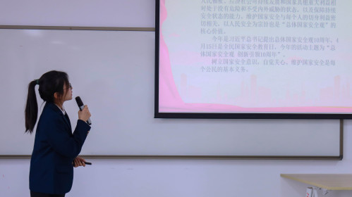 活动伊始,主持人范铭从思想、经历、荣誉等方面向学生们介绍了本次团日活动的主讲嘉宾,解释了什么是国家安全。正如她所说,“国家安全不仅是国家繁荣稳定的基石,更是民族尊严和自信的体现”。接下来领学人曹雅楠带领大家学习了国家安全的内容,深入了解了国家安全的相关知识,深刻理解了国家安全的内涵。