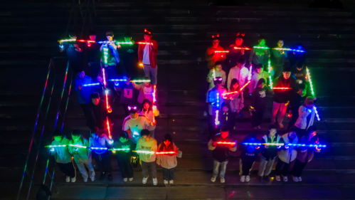 活动伊始,参与者在文理楼楼前起点处领取荧光棒及头饰,并在文理楼南侧合影留念。合影完毕后,活动负责人范晢玥向同学们介绍此次荧光夜跑的活动规则、夜跑路线以及相关注意事项,并动员和鼓励大家积极参加活动,坚持完成这一次的夜跑锻炼。随后,由刘佳辉整队和带队,其余参与者排成五路纵队,带着荧光手环,整齐划一地由文理楼南侧出发,途径工科实验楼E、学校东门、新图书馆、讲堂群东西环西侧和操场,最后到达体育馆完成了本次荧光夜跑活动。夜跑完成后,范晢玥组织同学们用荧光棒在体育馆前摆出“五”、“四”字样合影留恋。最后,同学们在结束点领取纪念明信片并加盖夜跑纪念印章。