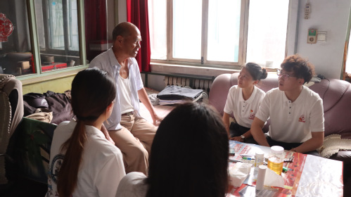 下午,队员们有幸采访到了姚村镇西丰村的王老先生。当年,年仅17岁的他就与父母一起参与到红旗渠的修建中。“腰三筐,棍儿杠,使的晚上上不了炕;腰三钻,棍儿锤,钻的石片儿满天飞”,这是当年王老先生等修渠人编的歌谣,他向队员们讲述着他们在修建红旗渠过程中的艰辛与奋斗。同村的修渠人后人也向队员们讲述着他们耳熟能详的修渠故事,队员们更切身地体会到了传承红旗渠精神的意义所在。
