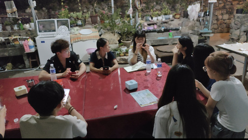 白天行走学,晚上研讨学。白天行走在探索红旗渠精神的路上,晚上,实践队队员们又围坐在一起,分享自己在这一天中的感悟。指导教师吴逸舟、辛福康对第一站的实践活动进行了总结,并提出了相关的指导意见;队长元晨晨详细讲述了第二站的行程安排,为第二天的实践活动做了充足的准备。