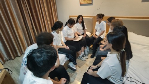 实践队队员们在晚上进行研讨学习 张兴硕摄