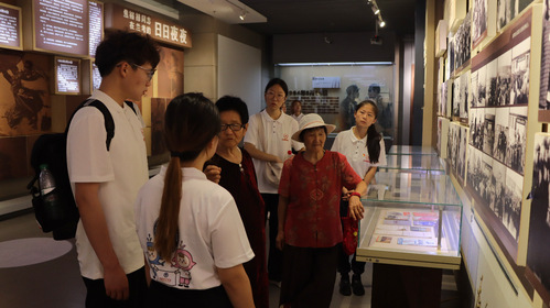 除了同样来参观学习的大学生们、外国友人们,实践队还采访了本地居民——82岁的姐妹花,望着展板上的黑白照片,她们向队员们亲切地讲述了照片上这位被焦裕禄救下的孩童的故事,为了继承焦书记的遗志,父亲给他改名为张继焦,现在是焦裕禄陵园的守护者。