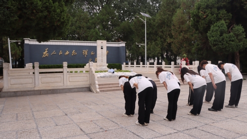 实践队员于焦裕禄烈士墓鞠躬致敬 张子莫摄