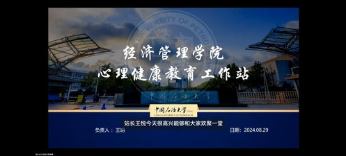 为帮助新生适应大学生活,明确个人定位,更好地应对未来可能出现的挑战,8月29日下午,6165cc金沙总站检测中心“灯塔引航”新生夏令营第六课“新心灵·新健康——心理健康,快乐成长”于线上成功举行。本次课程由我院学生会主席团成员邢序涵主持,学校心理健康教师王志鹏,学院心理健康教育工作站站长王玥主讲,2024级全体本科生参与。
