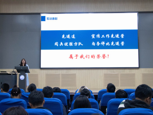 会议伊始,邹子涵带领学生们简单回顾了21天的军训历程,并向学生们隆重介绍了学院在本次军训中获得的各项荣誉。她指出这是24级全体本科同学共同努力得来的,是属于大家的荣誉,并对军训优秀学生进行表彰和嘉奖。