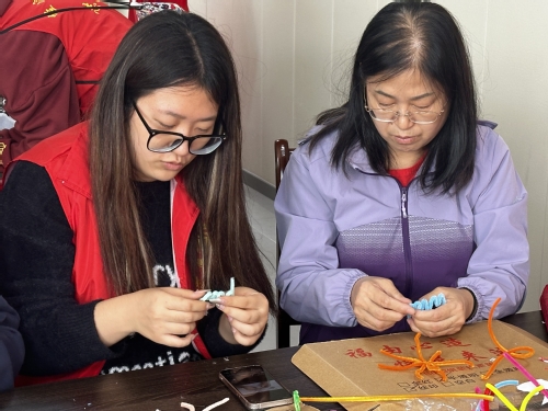 志愿者教老人进行扭扭棒制作 吴俊燃摄