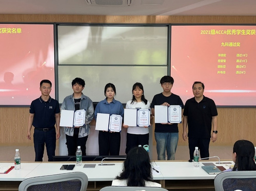 随后,激动人心的奖学金颁奖环节正式开启。刘丙泉副院长、胡景皓先生、闫卫华女士分别为获得单科最高奖和九科通过奖的ACCA方向班同学颁发荣誉证书。这份荣誉不仅是对获奖同学过去努力的肯定,更激励着全体方向班学子在ACCA学习之路上奋勇前行。