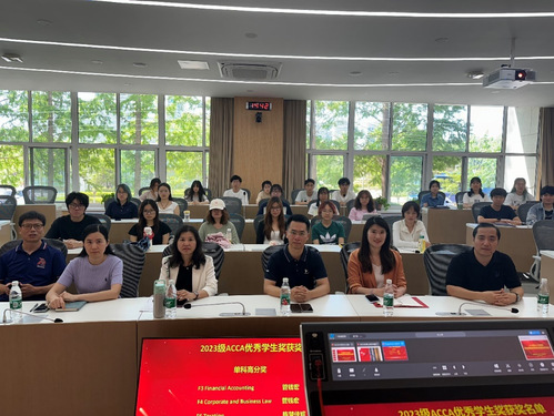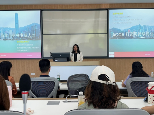 颁奖结束后,闫卫华主任带来了ACCA协会前沿发展动态的精彩讲座。她详细介绍了ACCA协会基本情况及在全球得到的认可,并从考试资源、模拟商赛、实习实践、海外升学等方面介绍了协会为方向班同学提供的丰富资源及对学生发展的强大赋能作用。ACCA协会定期举办职业发展日活动,邀请包括四大、八大会计师事务所、特斯拉、京东等五百强企业认可雇主参与,提供面对面交流、简历投递与职业指导的宝贵机会,助力同学们职业规划与未来职业发展。