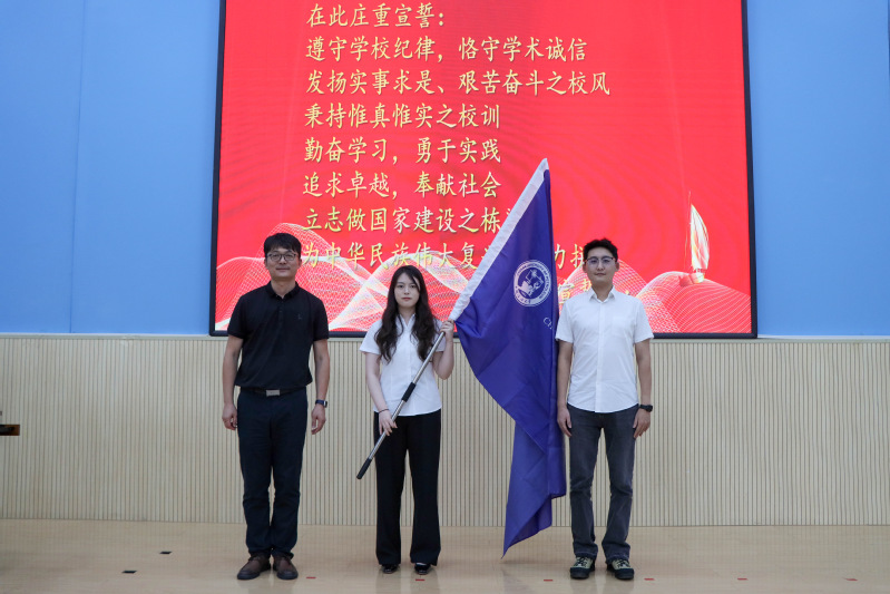 典礼尾声,全体2025级研究生在领誓人带领下庄严宣誓,明确使命与信念。随后,渐令向新生代表授旗,象征新生接过“经管追梦人”接力棒,开启逐梦新征程。