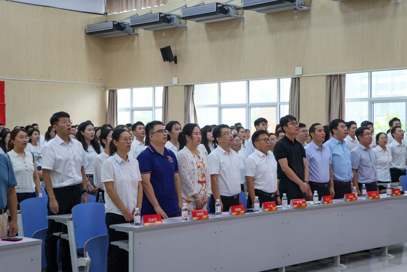 上午10时,典礼在雄壮的国歌声中拉开帷幕,全体师生庄严肃立、齐唱国歌,以庄严的仪式感开启研究生生涯的全新旅程。